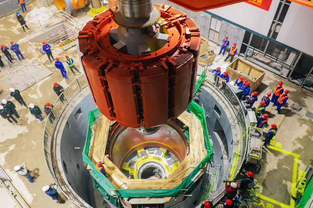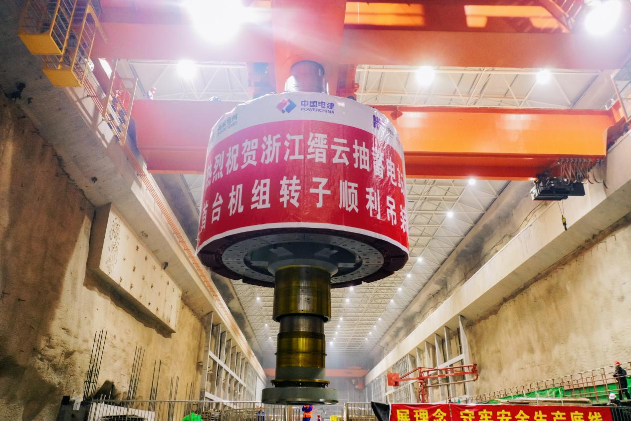 1月3日,國(guó)網(wǎng)新源浙江縉云抽水蓄能電站首臺(tái)機(jī)組轉(zhuǎn)子在兩臺(tái)250噸橋機(jī)合力吊裝下,跨越5個(gè)機(jī)坑,順利落入首臺(tái)機(jī)組機(jī)坑處。李紅先攝