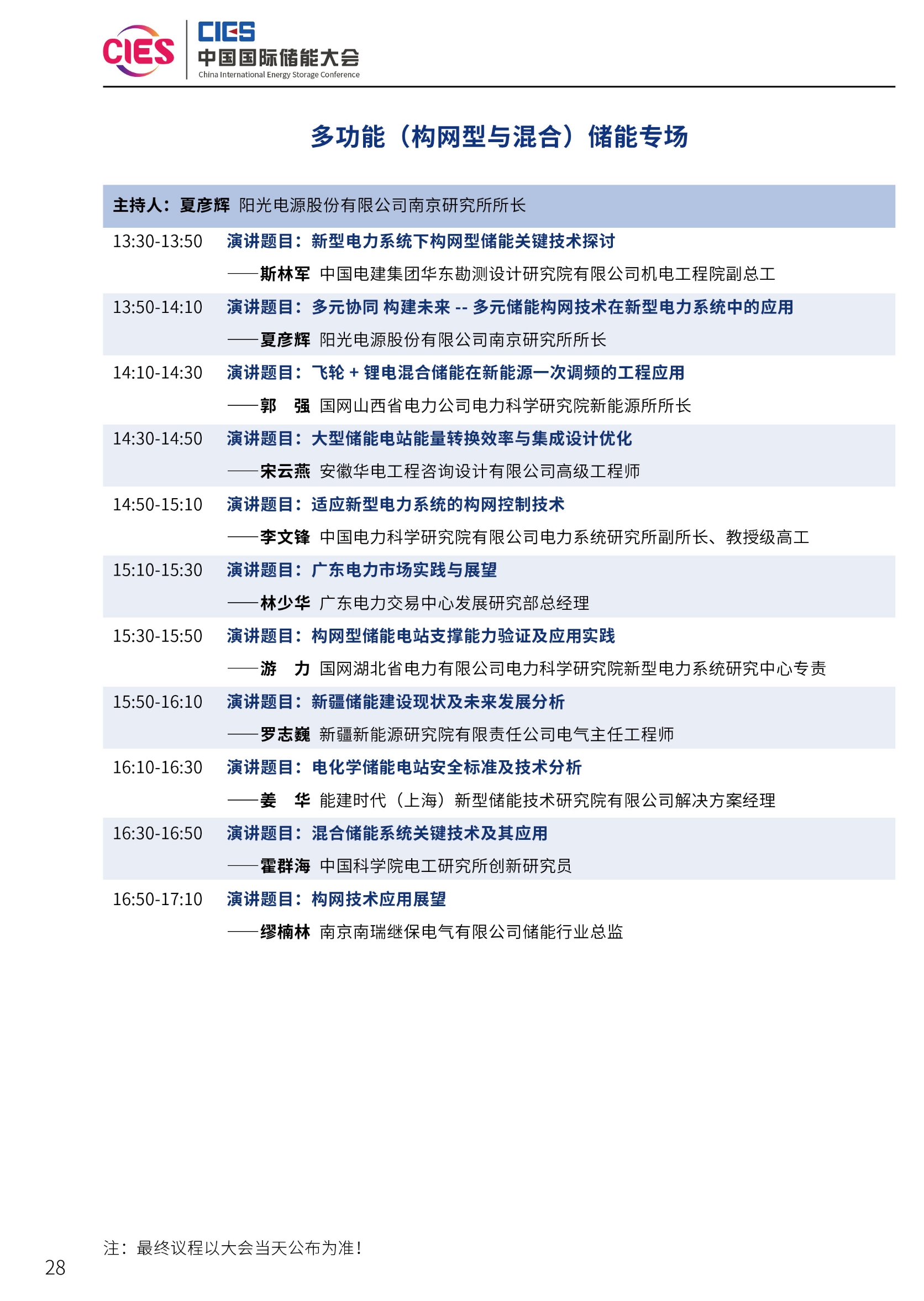 第十四屆中國國際儲能大會——多功能 (構(gòu)網(wǎng)型與混合) 儲能專場議程發(fā)布