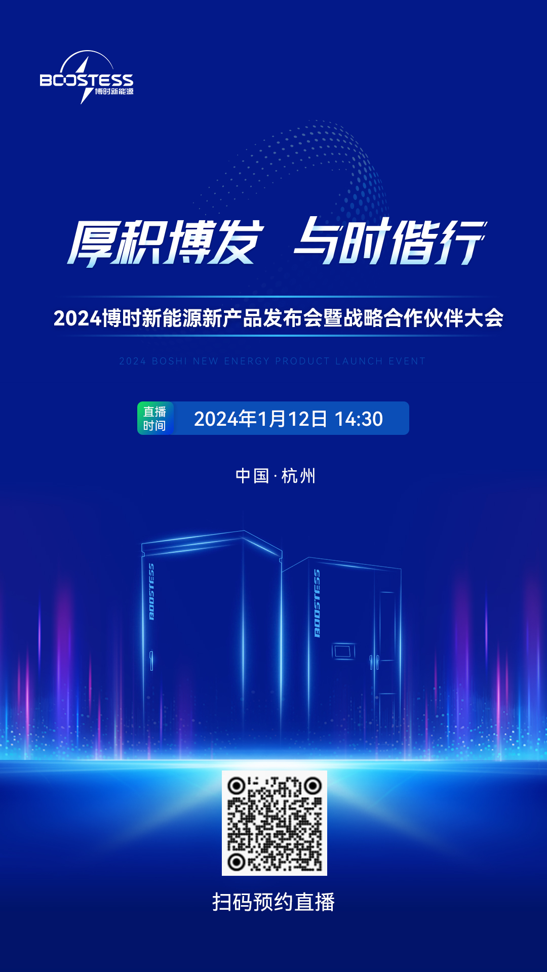 中國儲能網(wǎng)訊:把握市場機遇,助力能源轉型,“2024博時新能源新產品發(fā)布會暨戰(zhàn)略合作伙伴大會”以及“博時之夜感恩晚宴”,將在2024年1月12日于中國杭州盛大召開,本次活動以“厚積博發(fā),與時偕行”為主題,屆時將有相關政企嘉賓、行業(yè)專家、業(yè)內精英匯聚杭城,共同探討綠色能源的未來,見證全新儲能產品的誕生!