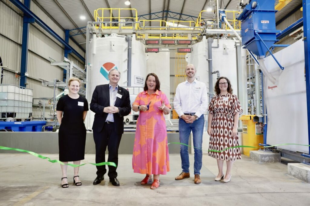 澳大利亞資源部長(zhǎng)Madeleine King (中)為AVL公司液流電池電解液工廠的正式啟用剪彩