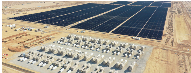 這個太陽能發(fā)電場規(guī)模龐大,占地4600英畝,由190萬塊美國First Solar公司制造光伏組件構(gòu)建而成。其中太陽能發(fā)電場裝機容量為875MW,以及近3.3GWh電池儲能系統(tǒng)。