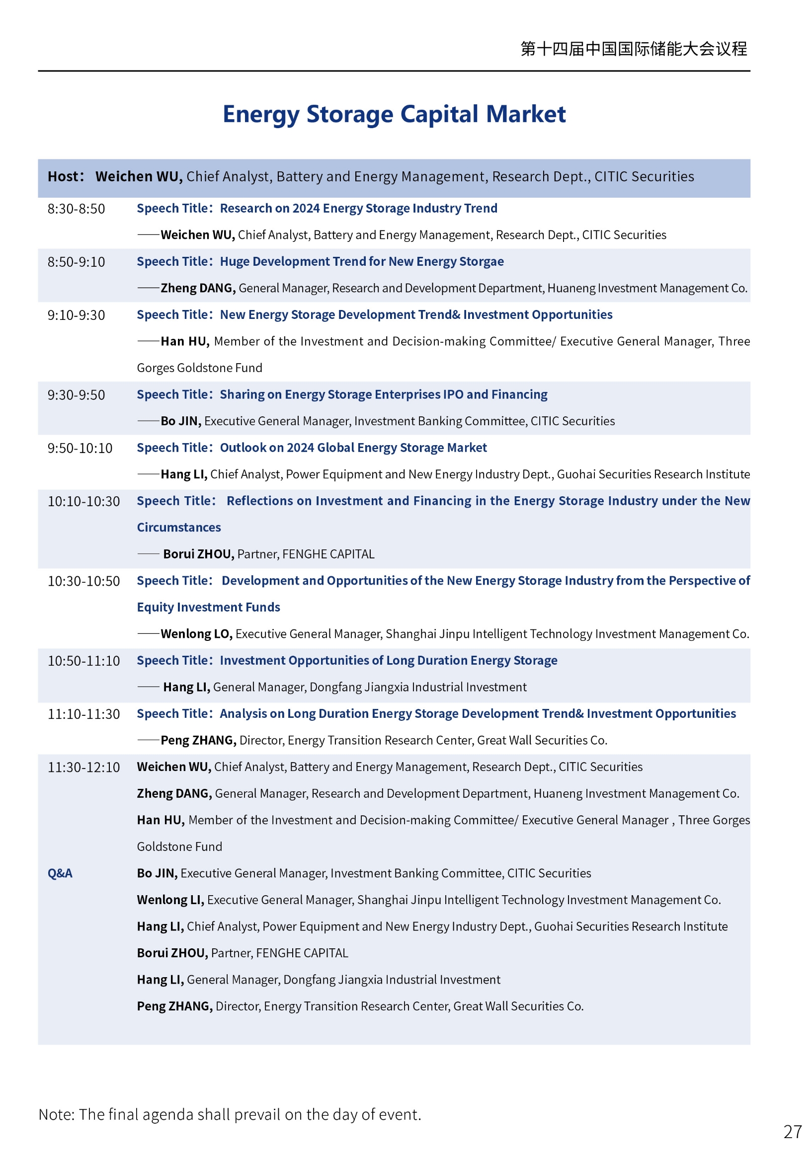 第十四屆中國國際儲能大會——新型儲能資本市場專場議程發(fā)布