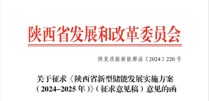 中國儲能網(wǎng)訊:近日,陜西發(fā)改委、能源局發(fā)布關(guān)于征求《陜西省新型儲能發(fā)展實(shí)施方案(2024-2025 年)》(征求意見稿)意見的函(以下簡稱“征求意見稿”)。