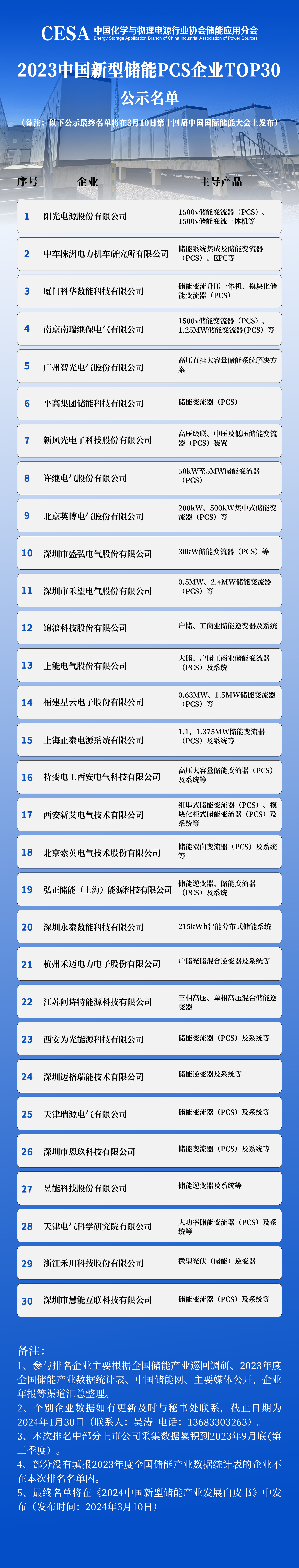 本次儲(chǔ)能產(chǎn)業(yè)鏈百?gòu)?qiáng)企業(yè)評(píng)選活動(dòng)針對(duì)的對(duì)象主要是 CESA 儲(chǔ)能應(yīng)用分會(huì)廣大會(huì)員企業(yè)和與儲(chǔ)能業(yè)務(wù)緊密相關(guān)的上市公司,評(píng)價(jià)數(shù)據(jù)以2023年為準(zhǔn),主要通過(guò)協(xié)會(huì)實(shí)地走訪調(diào)研、會(huì)員企業(yè)年度數(shù)據(jù)申報(bào)、媒體披露和上市公司年報(bào)等多個(gè)渠道,最終形成2023中國(guó)新型儲(chǔ)能鋰離子電池企業(yè)TOP20、2023中國(guó)新型儲(chǔ)能系統(tǒng)集成企業(yè)TOP30、2023中國(guó)新型儲(chǔ)能PCS企業(yè)TOP30、2023中國(guó)新型儲(chǔ)能液流電池企業(yè)TOP30、2023中國(guó)工商業(yè)儲(chǔ)能企業(yè)TOP60、2023中國(guó)新型儲(chǔ)能BMS企業(yè)TOP10、2023中國(guó)新型儲(chǔ)能飛輪儲(chǔ)能企業(yè)TOP10、2023中國(guó)新型儲(chǔ)能溫控系統(tǒng)企業(yè)TOP20、2023中國(guó)新型儲(chǔ)能消防與安全企業(yè)TOP 20、2023中國(guó)新型儲(chǔ)能壓縮空氣儲(chǔ)能企業(yè)TOP10及2023中國(guó)新型儲(chǔ)能產(chǎn)業(yè)企業(yè)TOP100名單。