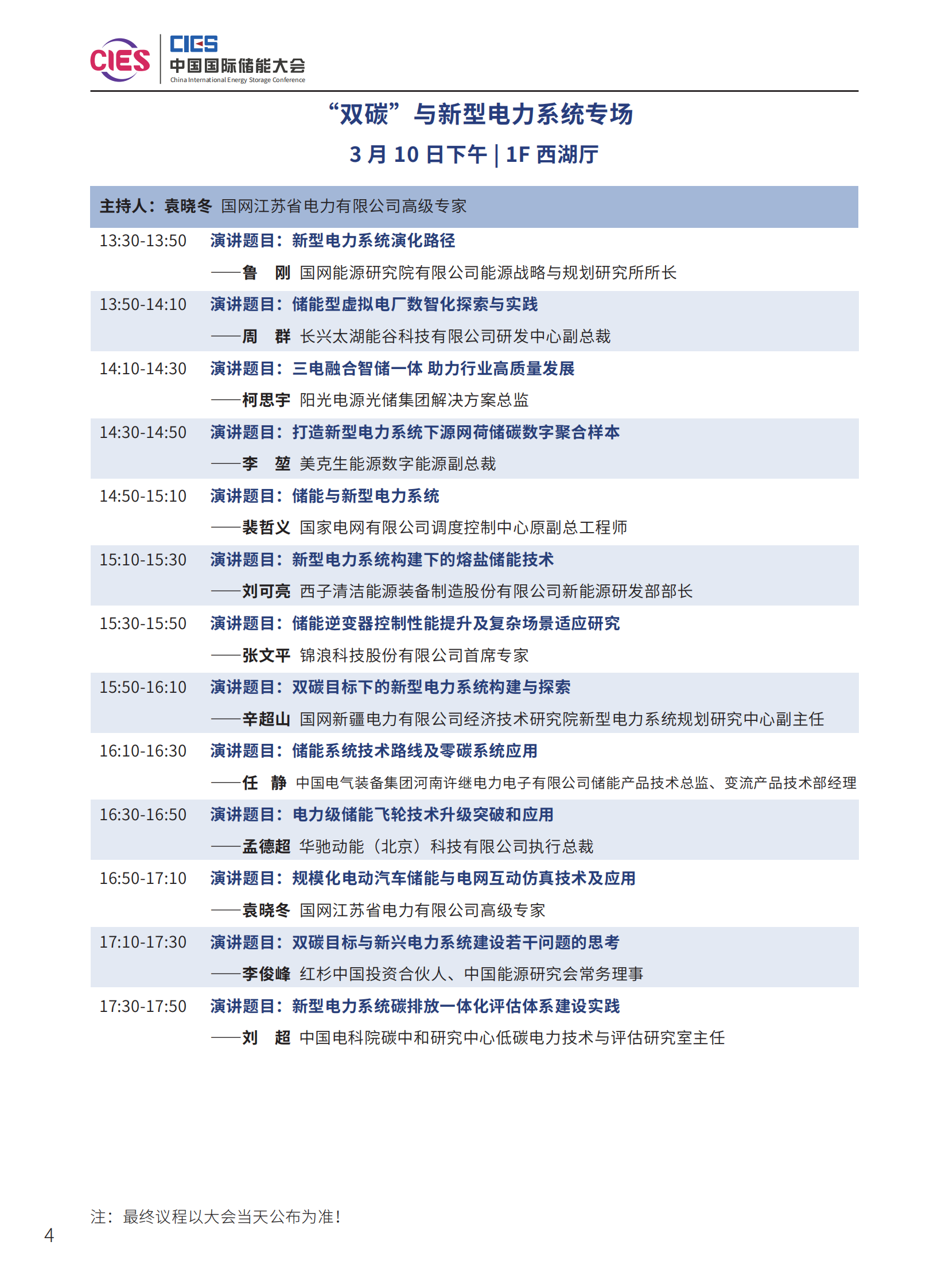 本次大會(huì)將安排大會(huì)開(kāi)幕式暨院士/專家主題報(bào)告、工業(yè)綠色微電網(wǎng)、“雙碳”與新型電力系統(tǒng)、雙碳與新型電力系統(tǒng)暨南網(wǎng)儲(chǔ)能與可再生能源專場(chǎng)、新型儲(chǔ)能系統(tǒng)集成解決方案(上、中、下)、儲(chǔ)能電站規(guī)劃與設(shè)計(jì)、國(guó)際儲(chǔ)能、儲(chǔ)能檢測(cè)、認(rèn)證及標(biāo)準(zhǔn)、儲(chǔ)能溫控系統(tǒng)與安全、長(zhǎng)時(shí)儲(chǔ)能、工商業(yè)儲(chǔ)能、新型儲(chǔ)能資本專場(chǎng)、儲(chǔ)能電站建設(shè)與運(yùn)維、多功能儲(chǔ)能(構(gòu)網(wǎng)型與混合)、新型電力系統(tǒng)與儲(chǔ)能電站建設(shè)、儲(chǔ)能新品發(fā)布(4場(chǎng))等22個(gè)專場(chǎng)論壇。