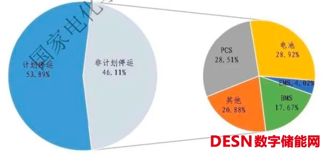 第一個(gè)這個(gè)是2022年的全年和2023年的上半年,國(guó)內(nèi)的電化學(xué)儲(chǔ)能站的故障分布度,2023年下半年的數(shù)據(jù)還沒(méi)有出來(lái),我們把數(shù)據(jù)進(jìn)行了歸一化處理,我們按照每一百兆瓦時(shí)這個(gè)數(shù)據(jù)進(jìn)行計(jì)算,電化學(xué)儲(chǔ)能站大家可以看出來(lái),在新的這段時(shí)間內(nèi),它的單位能量停機(jī)數(shù)增加了68%,它的電池故障的比例從9%上漲到了28.92%,增長(zhǎng)了221%,已經(jīng)排到第一的位置了。