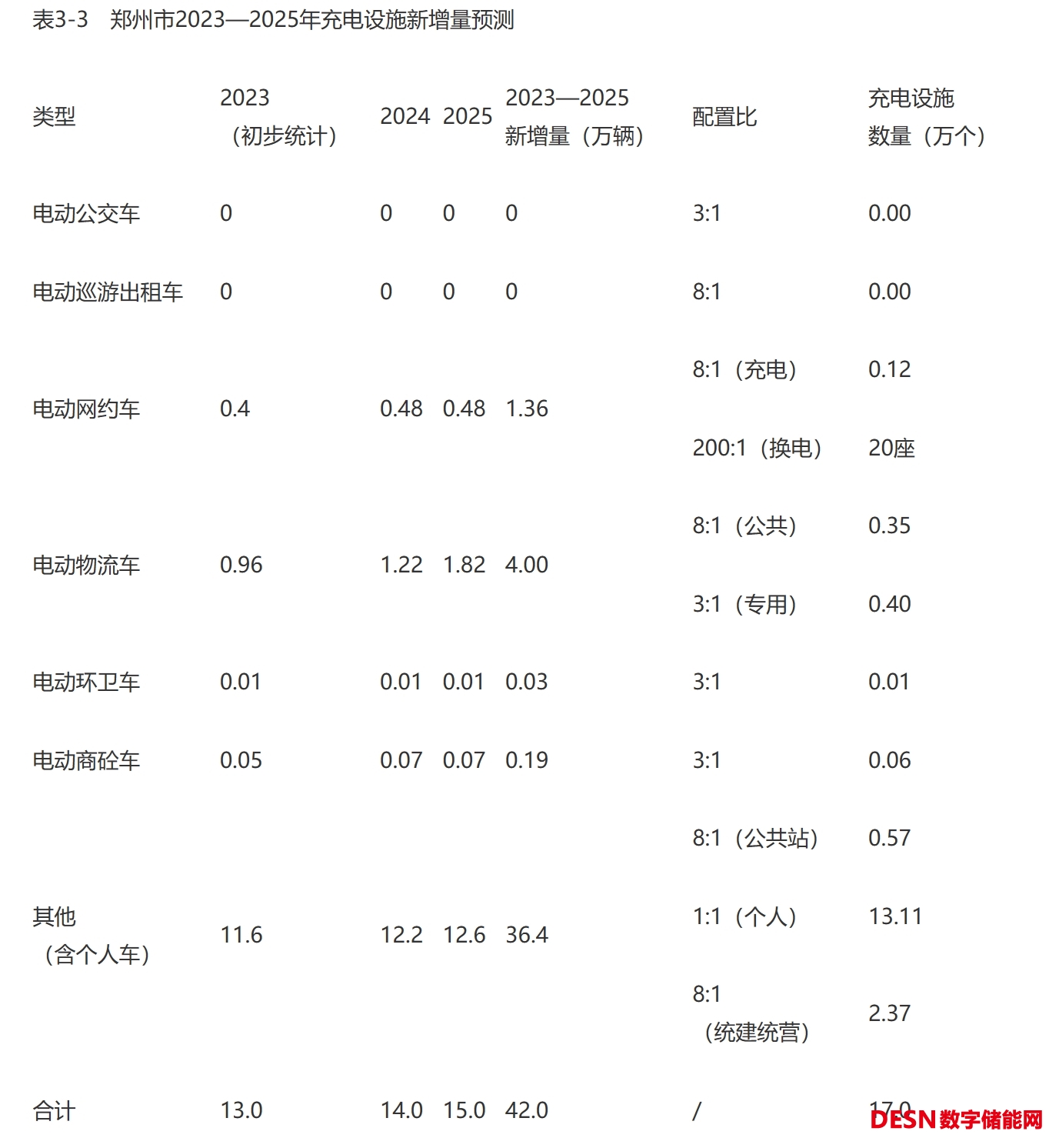 根據(jù)工業(yè)和信息化部等部門《關(guān)于組織開展公共領(lǐng)域車輛全面電動化先行區(qū)試點工作的通知》(工信部聯(lián)通裝函〔2023〕23號),試點領(lǐng)域新增及更新車輛中新能源汽車比例顯著提高,其中城市公交、出租、環(huán)衛(wèi)、郵政快遞、城市物流配送領(lǐng)域力爭達到80%。本規(guī)劃原則上采用以上標(biāo)準(zhǔn),結(jié)合鄭州市實際調(diào)研情況進行合理調(diào)整,2023—2025年各類型新能源汽車增量如下表所示。