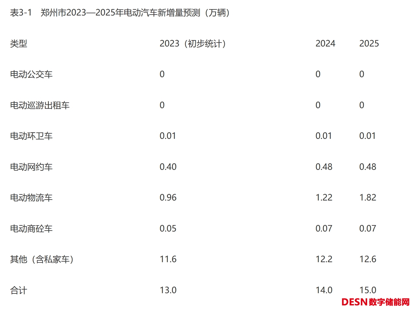 2025年新能源汽車保有量預(yù)測采用年均增長率法和政策分析法,綜合考慮兩種分析法預(yù)測值,2023年初步統(tǒng)計新能源汽車保有量為38萬輛,2024—2025年期間鄭州新能源汽車保有量分別為52萬輛、67萬輛,2023年初步統(tǒng)計新能源汽車新增量為13萬輛,2024—2025年鄭州新能源汽車新增量將分別達到14萬輛、15萬輛。