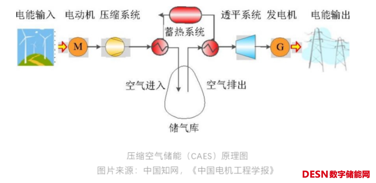 壓縮空氣儲(chǔ)能(CAES)在用電低谷,通過(guò)壓縮機(jī)把空氣壓縮成高壓空氣,在用電高峰,釋放高壓空氣,驅(qū)動(dòng)膨脹機(jī)就可以驅(qū)動(dòng)發(fā)電機(jī)發(fā)電。
