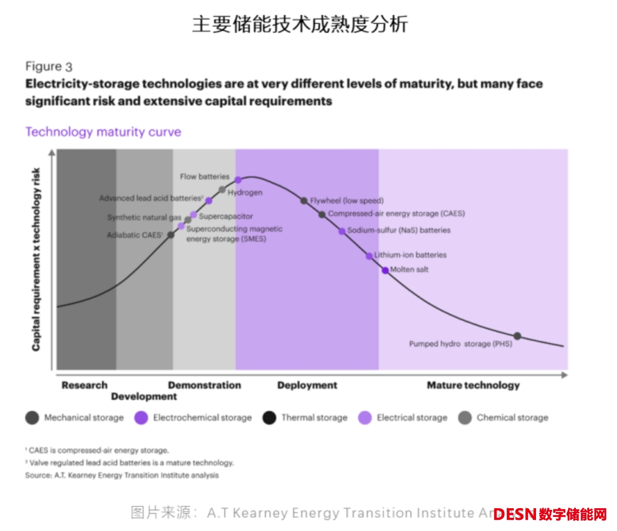 儲(chǔ)能技術(shù)大致可以劃分為電化學(xué)儲(chǔ)能和物理儲(chǔ)能兩大類,不同技術(shù)的成熟度也不盡相同: