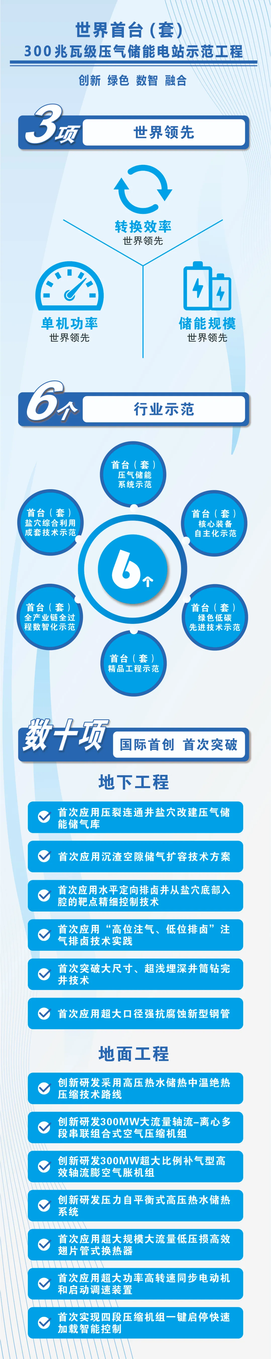項(xiàng)目利用應(yīng)城地區(qū)廢棄鹽礦作為儲(chǔ)氣庫是鹽穴型壓氣儲(chǔ)能電站,在項(xiàng)目建設(shè)過程中,中國能建聯(lián)合建設(shè)各方實(shí)現(xiàn)了項(xiàng)目關(guān)鍵核心技術(shù)裝備100%國產(chǎn)化、攻克了工藝系統(tǒng)集成地下儲(chǔ)氣庫建造、關(guān)鍵裝備研發(fā)等諸多難題,形成了該領(lǐng)域的自主產(chǎn)權(quán)和標(biāo)準(zhǔn)體系鍛造了一系列國際首創(chuàng)技術(shù)和配套產(chǎn)品。