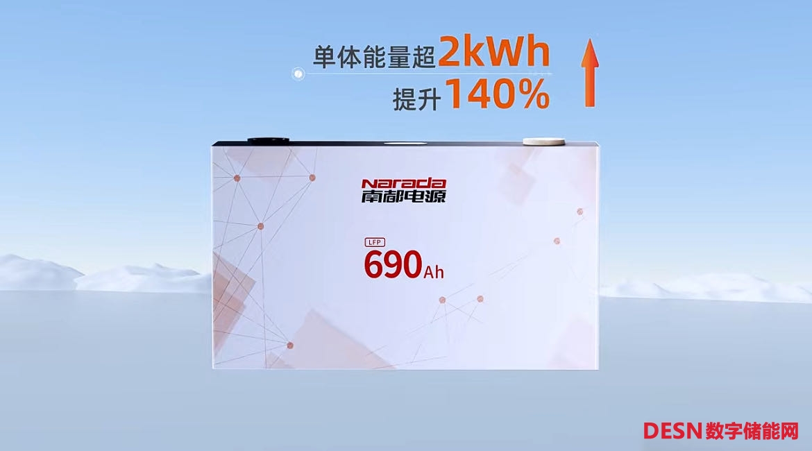 4月11日,南都電源發(fā)布690Ah超大容量儲能專用電池。南都690Ah電池擁有20年超長壽命,體積能量密度達380-440Wh/L,循環(huán)壽命高達15000次,單體能量超過2度電,能量效率超96%,同時實現(xiàn)了系統(tǒng)五年“零”衰減。