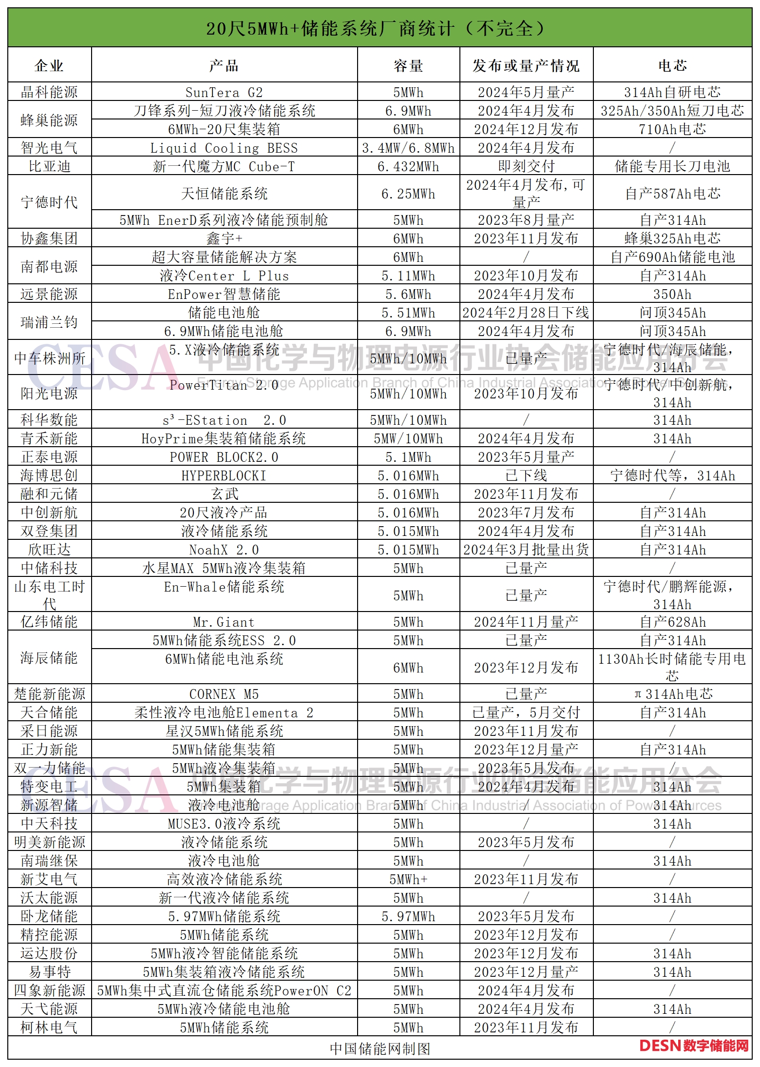 隨著300Ah+儲能電芯的逐步量產(chǎn),5MWh+儲能系統(tǒng)成為電池廠商和系統(tǒng)集成商們競相布局的焦點。