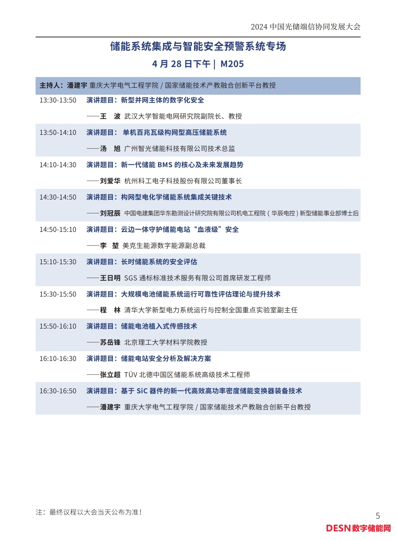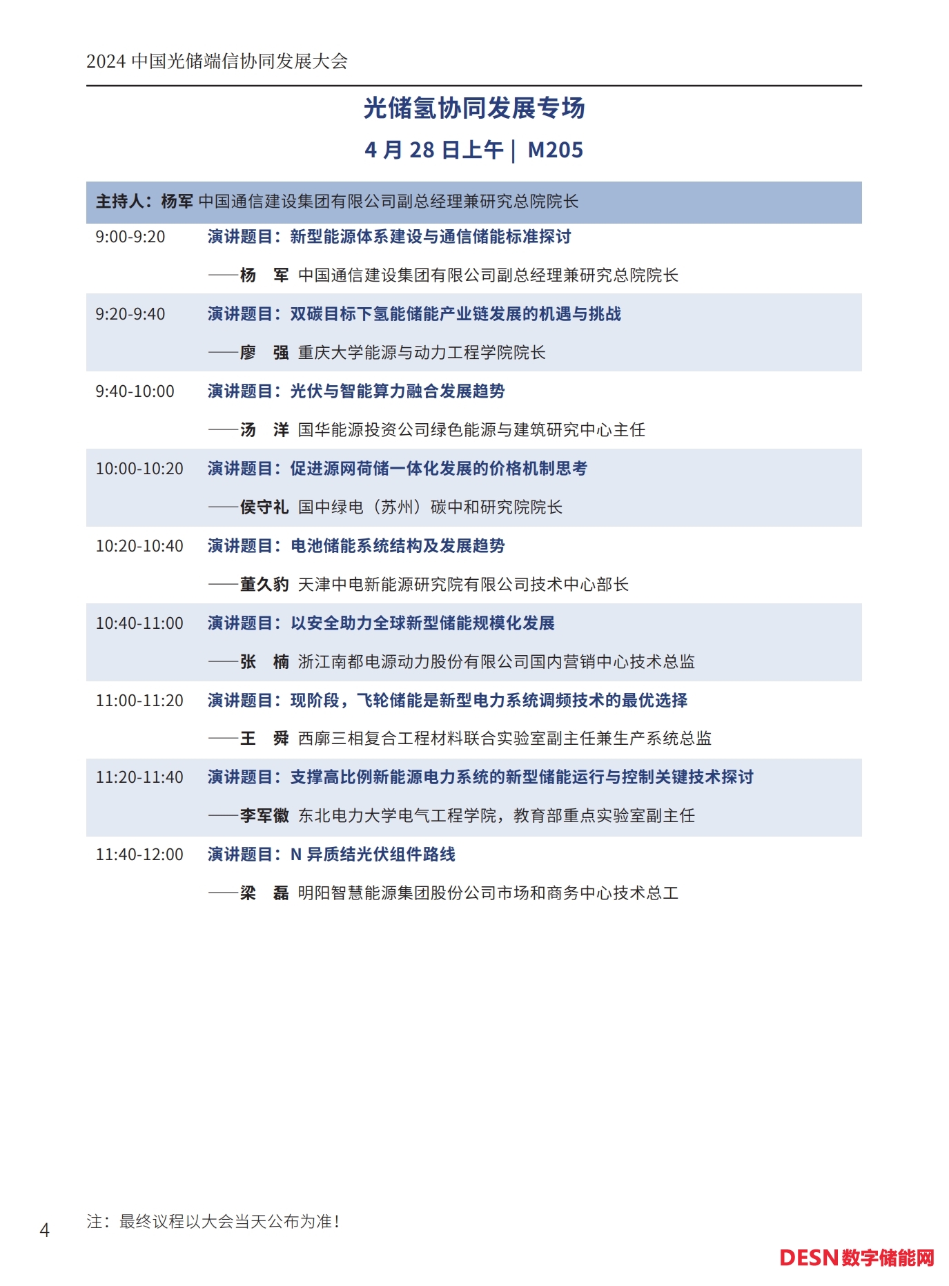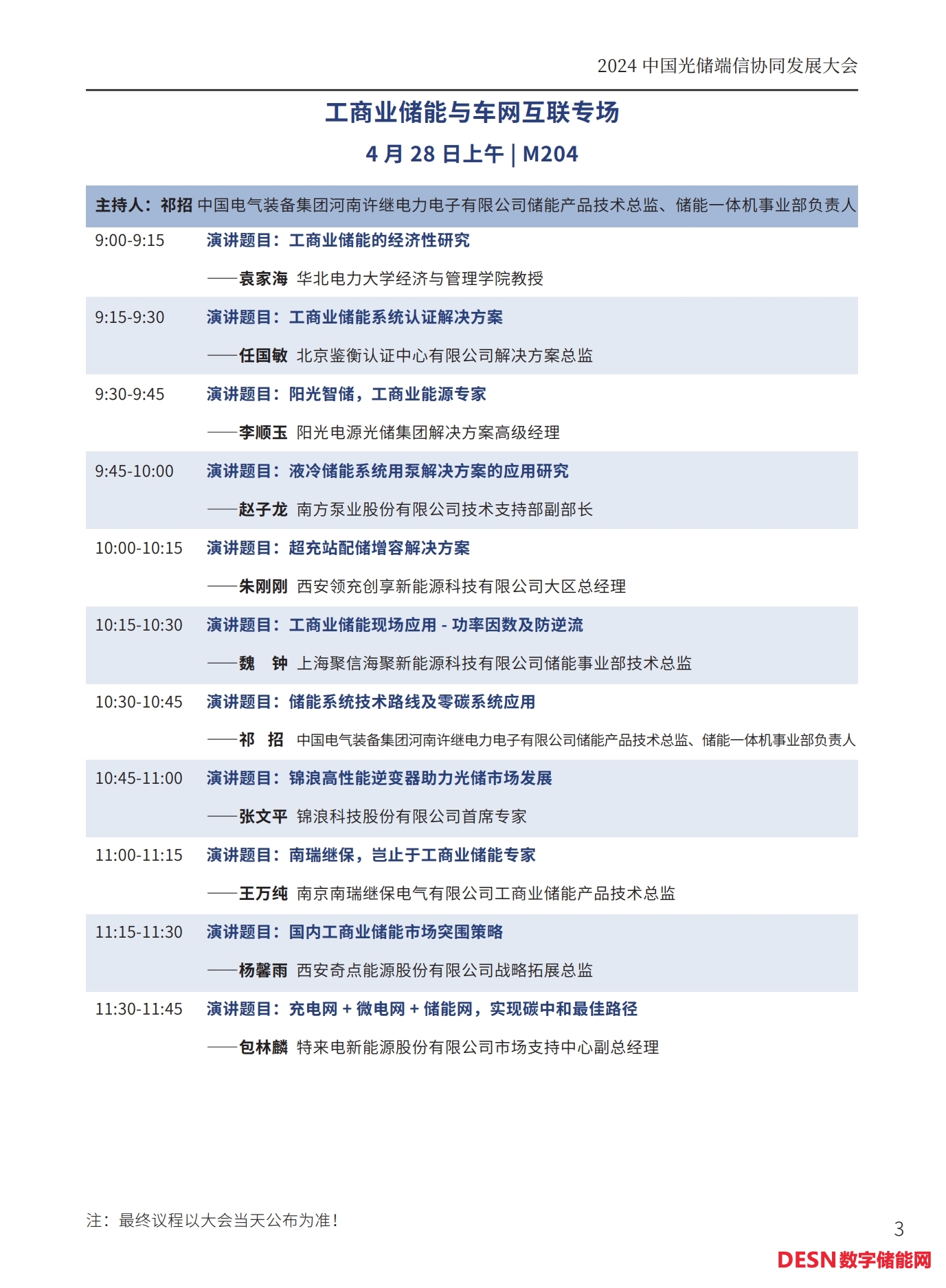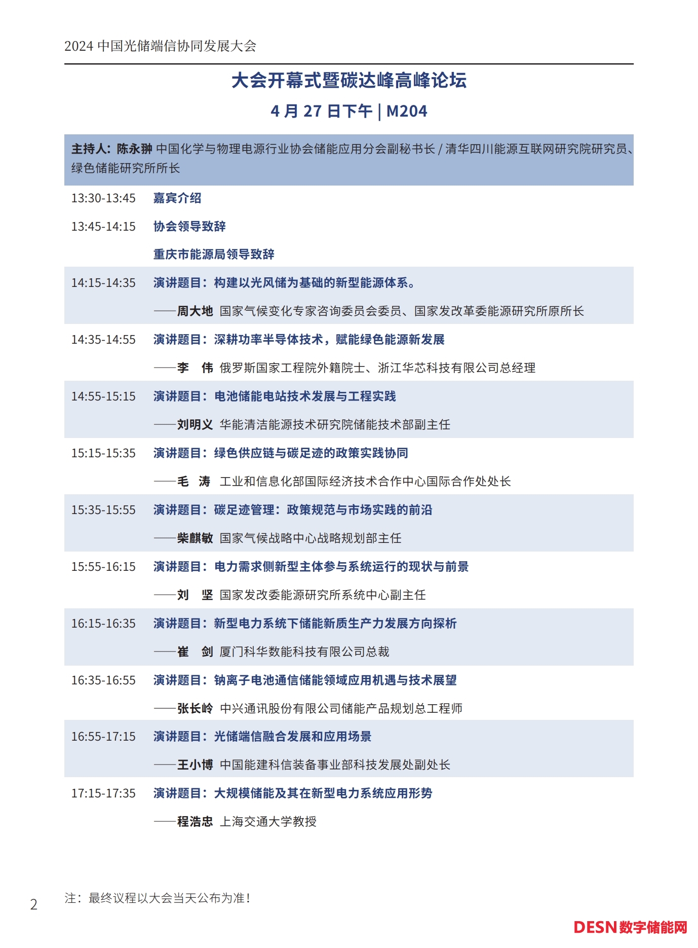本屆大會(huì)將安排:大會(huì)開幕式暨碳達(dá)峰高峰論壇、工商業(yè)儲(chǔ)能與車網(wǎng)互聯(lián)專場、光儲(chǔ)氫協(xié)同發(fā)展專場、儲(chǔ)能系統(tǒng)集成與智能安全預(yù)警系統(tǒng)專場、人工智能與碳足跡專場等五個(gè)專場論壇。以下為本次大會(huì)主要議程(最終議程以活動(dòng)當(dāng)天公布為準(zhǔn))。