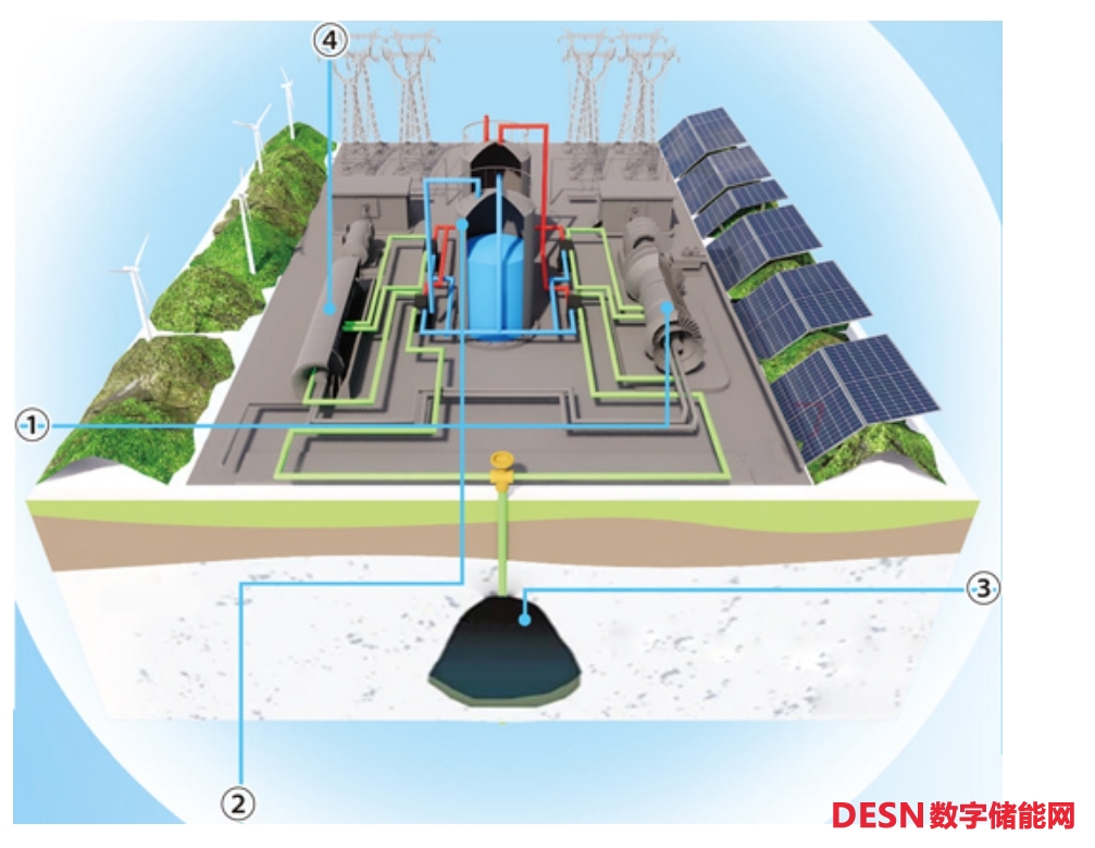 釋放、加熱鹽穴內(nèi)高壓空氣,驅(qū)動膨脹機(jī)帶動發(fā)電機(jī)發(fā)電