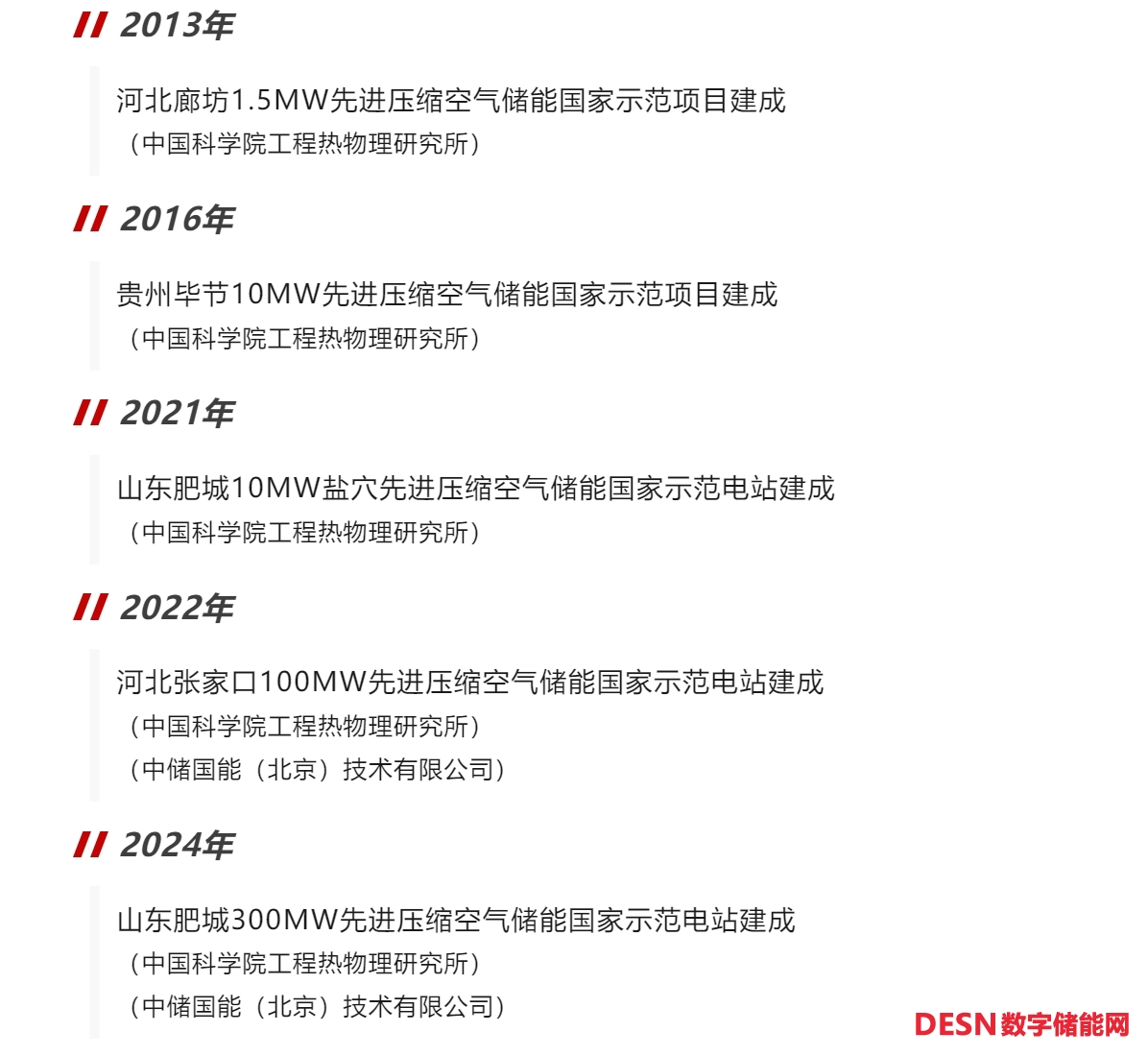 近兩年來,隨著壓縮空氣儲能技術(shù)及示范工程的成功應(yīng)用,該技術(shù)得到廣泛重視和推廣。2024年1月17日,國家能源局2024年1號公告發(fā)布“新型儲能試點示范項目名單”,其中壓縮空氣儲能項目共計11項,而采用基于中儲國能先進(jìn)壓縮空氣儲能技術(shù)的有5項,占據(jù)了絕對領(lǐng)先優(yōu)勢。