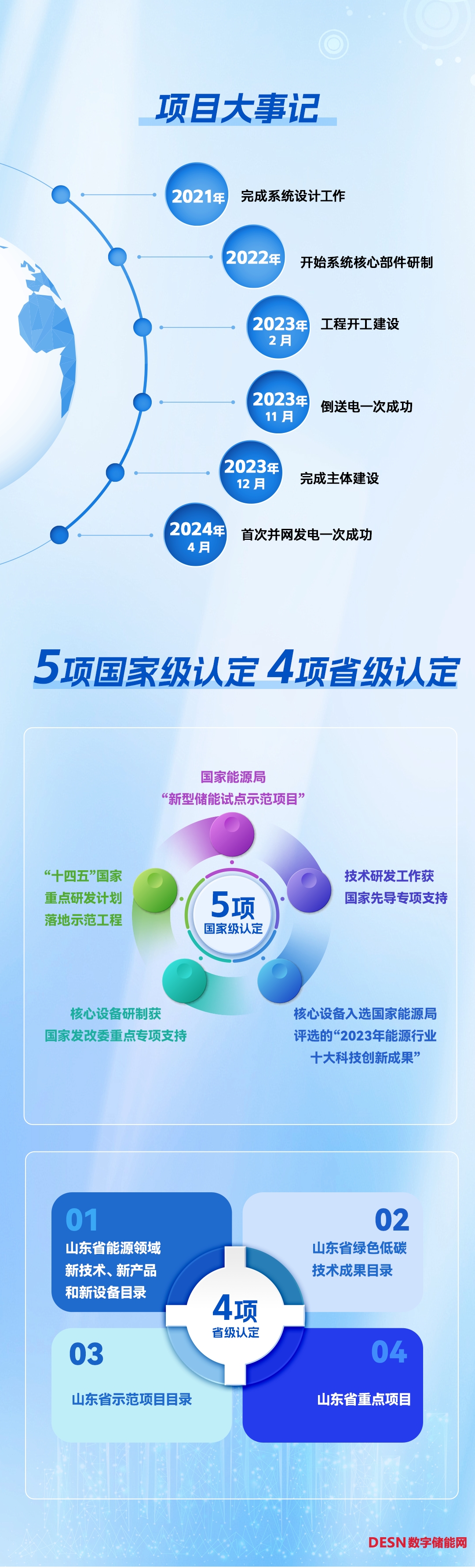 該電站利用山東省肥城市豐富的地下鹽穴資源儲氣,以空氣為介質(zhì)在電網(wǎng)側(cè)實現(xiàn)大規(guī)模電力儲能,能夠為電網(wǎng)提供調(diào)峰、調(diào)頻、調(diào)相、備用、黑啟動等電力調(diào)控功能,有效支撐電力系統(tǒng)平穩(wěn)、高效運(yùn)行。