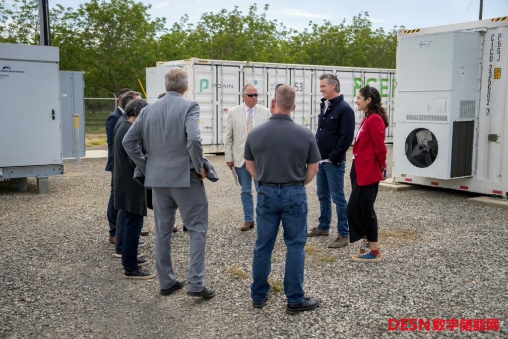 加州州長Gavin Newsom (右二)參觀在薩克拉門托西部山谷運營的電池儲能系統(tǒng)