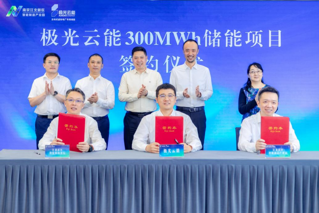 活動中,江北新區(qū)投資促進和商務(wù)局局長王為華,江北新區(qū)智能制造產(chǎn)業(yè)發(fā)展黨工委書記、管辦主任徐韜與極光云能市場與高級副總裁王佃平簽署了《300MWh儲能項目框架協(xié)議》。
