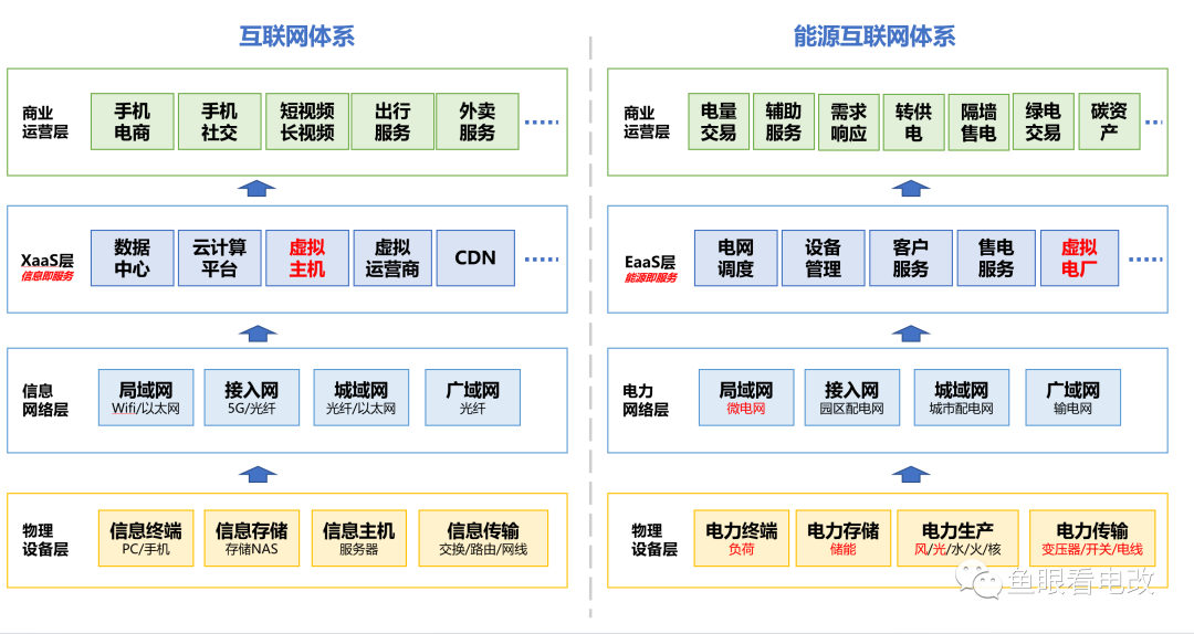 左半邊是IT互聯(lián)網(wǎng)生態(tài)體系,右半邊是能源互聯(lián)網(wǎng)電力生態(tài)體系。