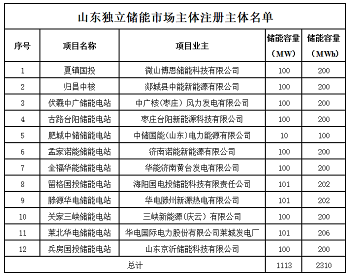 至此,該名單與前批次名單合計12個獨立儲能電站進入山東現貨市場,總規(guī)模達到1.1GW/2.3GWh。