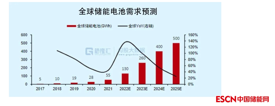 高工產(chǎn)業(yè)研究院(GGII)預(yù)計,“十四五”儲能鋰電池的總出貨量年復(fù)合增長將超過50%,到2025年,全球儲能電池出貨量將逼近500GWh;到2030年,全球儲能電池市場將達2萬億。其中,海外市場是重要增量。