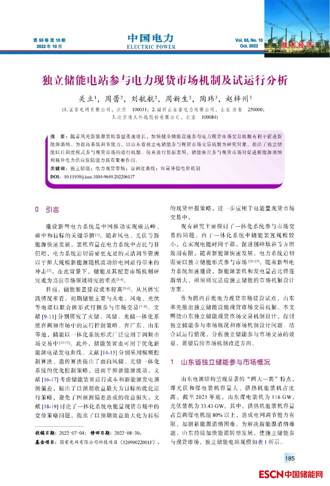 關(guān)立, 周蕾, 劉航航, 等. 獨立儲能電站參與電力現(xiàn)貨市場機制及試運行分析[J]. 中國電力, 2022, 55(10): 185-190.