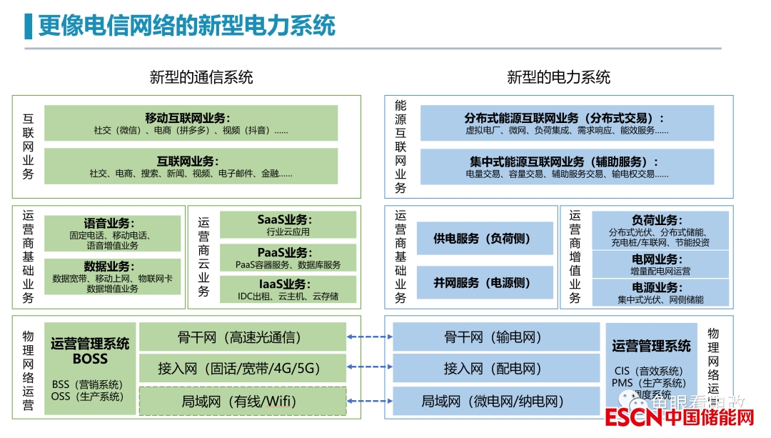 新型的電力系統(tǒng),在物理網(wǎng)絡運營、運營商基礎業(yè)務、運營商增值業(yè)務、以及上層的能源互聯(lián)網(wǎng)業(yè)務方面,都出現(xiàn)了很多新的東西。
