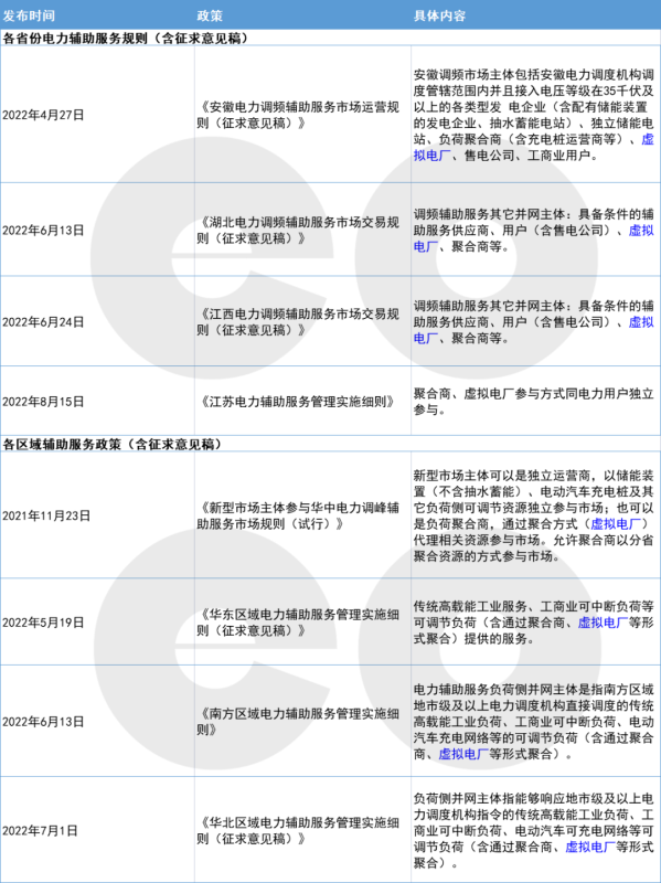 表3:2021年以來各地(區(qū)域)提及虛擬電廠的電力輔助服務(wù)規(guī)則(含征求意見稿)(不完全梳理)
