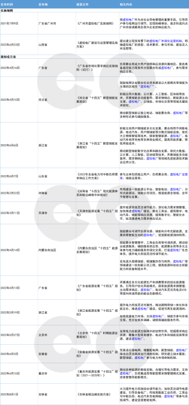 表2:2021年以來各地關(guān)于虛擬電廠的相關(guān)政策(不完全梳理)