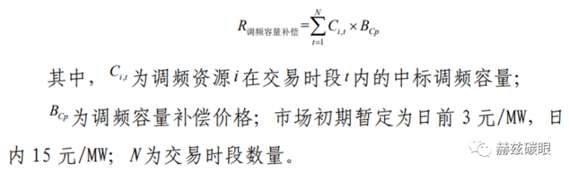 調(diào)頻容量補(bǔ)償:中標(biāo)的調(diào)頻資源容量補(bǔ)償按日統(tǒng)計(jì),按月結(jié)算,調(diào)頻資源日容量補(bǔ)償R調(diào)頻容量補(bǔ)償計(jì)算公式如下: