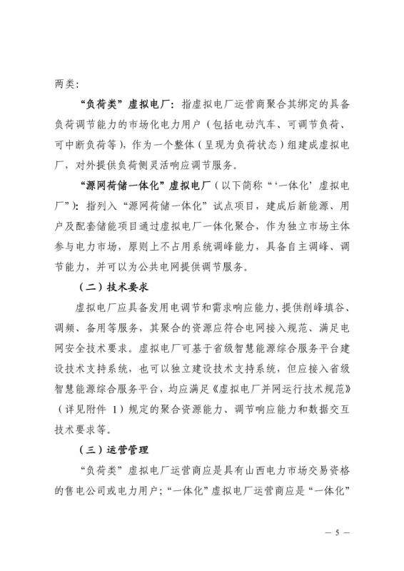 中國儲能網(wǎng)訊:6月23日,山西省能源局印發(fā)《虛擬電廠建設與運營管理實施方案》,《方案》表示,引導發(fā)、用、儲側資源通過虛擬電廠方式積極參與電力平衡,大幅提升電力系統(tǒng)的靈活性和可靠性。按照虛擬電廠聚合優(yōu)化的資源類別不同,將虛擬電廠分為兩類:負荷類虛擬電廠、源網(wǎng)荷儲一體化虛擬電廠。