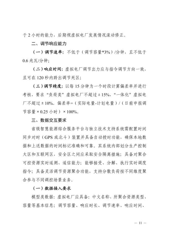 在調節(jié)容量及時長方面,要求虛擬電廠初期不低于20MW,且不低于最大用電負荷的10%,持續(xù)參與響應不小于2小時。