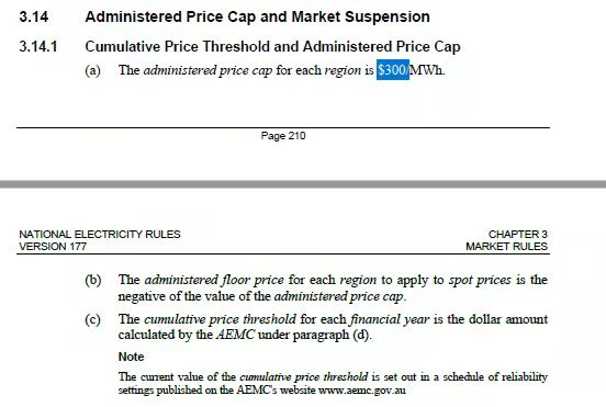 15100澳元/兆瓦時的限價,旨在使得機組能夠更多地回收固定成本,300澳元/兆瓦時的限價則是反映機組收回燃料成本所需的最高價格。