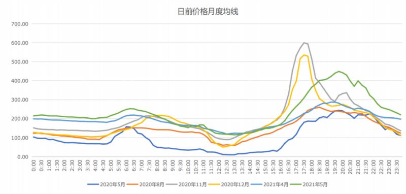 陜西省2020年5月~2021年5月的月度平均日前價格如下圖所示。
