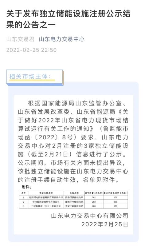 2月27日上午11時(shí),滕源華電儲(chǔ)能電站在山東電力現(xiàn)貨交易平臺(tái)成功提交日前電能量申報(bào)數(shù)據(jù),標(biāo)志著該儲(chǔ)能電站成為全國(guó)首家參與電力現(xiàn)貨交易的獨(dú)立儲(chǔ)能設(shè)施。