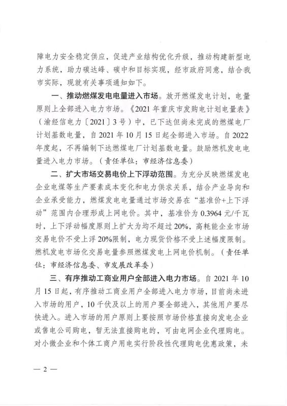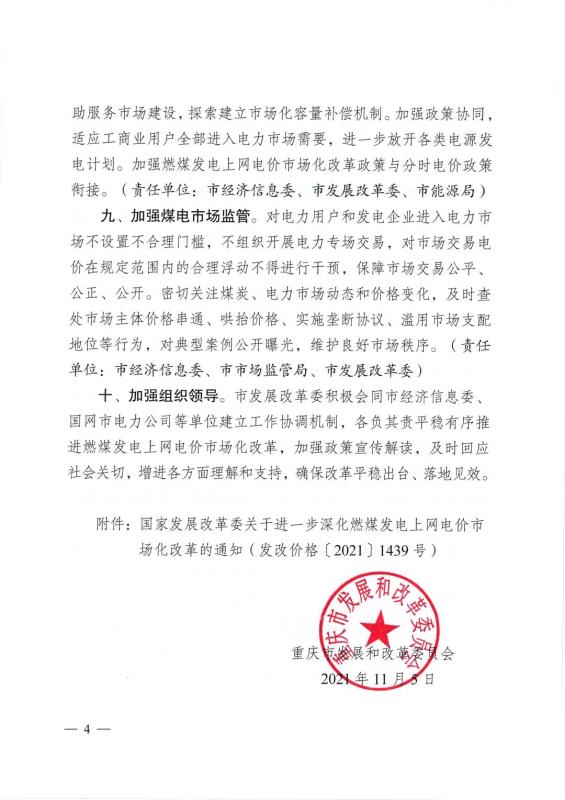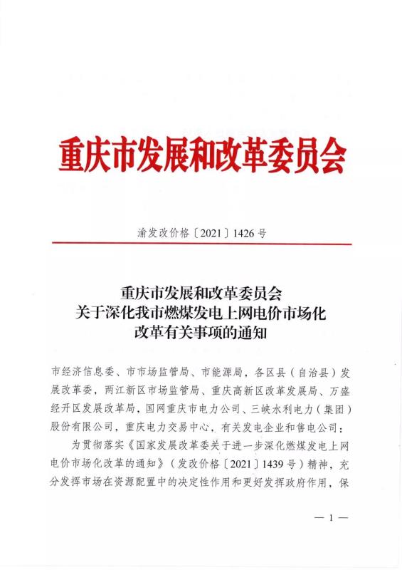重慶:深化燃煤發(fā)電上網(wǎng)電價(jià)市場化改革