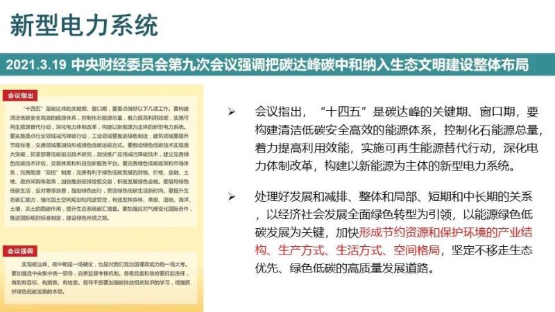 1.新能源更大規(guī)模發(fā)展將帶來系列問題,新型電力系統(tǒng)提供了整體解決方案。電力系統(tǒng)是我國最強大的能源基礎(chǔ)設(shè)施,依托無處不在的電網(wǎng)支撐新能源的發(fā)展,是實現(xiàn)“雙碳”戰(zhàn)略最主要的路徑。充分考慮政策、產(chǎn)業(yè)、市場、技術(shù)等約束因素,解決新能源隨機波動性、低抗擾性和弱支撐性等問題,在安全、經(jīng)濟(jì)、環(huán)保幾個方面實現(xiàn)各方可接受的平衡,是發(fā)展新型電力系統(tǒng)的整體目標(biāo)。