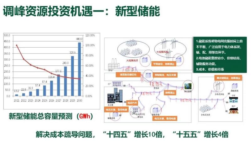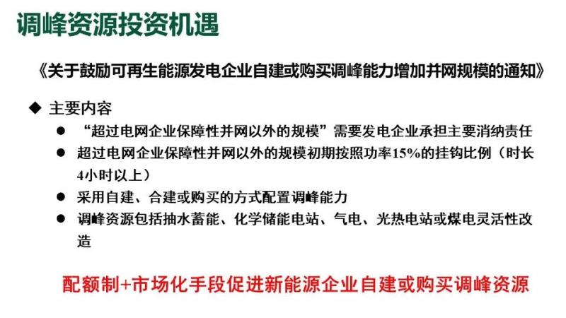 5.通過市場手段促進(jìn)新能源建設(shè)或購買調(diào)峰資源,是儲能發(fā)展的重要推動力,也是綠電市場持續(xù)擴(kuò)大的支撐。如果新能源作為主體能源大規(guī)模進(jìn)入市場,當(dāng)前針對綠電交易結(jié)果的優(yōu)先交易組織和執(zhí)行難以為繼,入市新能源必將需要考慮自身發(fā)電曲線并接受偏差考核,迫使新能源自建或購買調(diào)峰資源。近期發(fā)改委、能源局發(fā)布的《關(guān)于鼓勵可再生能源發(fā)電企業(yè)自建或購買調(diào)峰能力增加并網(wǎng)規(guī)模的通知》已初見政策方向,通知要求超過電網(wǎng)企業(yè)保障性并網(wǎng)以外的新能源初期按照功率15%的掛鉤比例(時長4小時以上),采用自建、合建或購買的方式配置調(diào)峰能力。較長時長儲能迎來發(fā)展機遇,以此推算,新型儲能在“十四五”期間將有10倍容量增長,“十五五”期間仍有4倍容量增長。同時,由于火電靈活性改造成本較低,且在電力系統(tǒng)中保持必要容量的火電機組是維持電力系統(tǒng)慣量與穩(wěn)定性的重要基礎(chǔ),10億千瓦級別的火電靈活性改造也能產(chǎn)生萬億級別的市場。當(dāng)然,新型儲能與火電靈活性改造具有此消彼長的關(guān)系,后續(xù)取決于兩者技術(shù)發(fā)展與成本的對比。