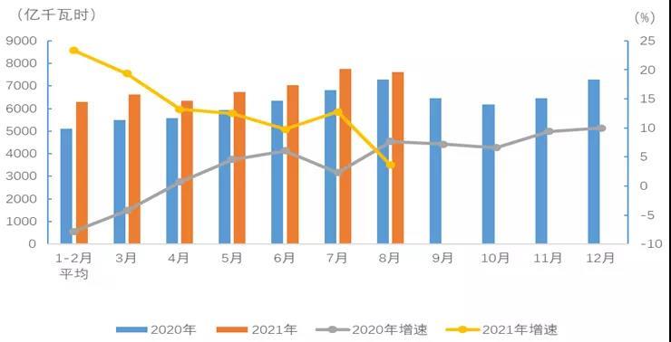 1-8月,全國全社會用電量54704億千瓦時,同比增長13.8%。其中,8月份全國全社會用電量7607億千瓦時,同比增長3.6%。