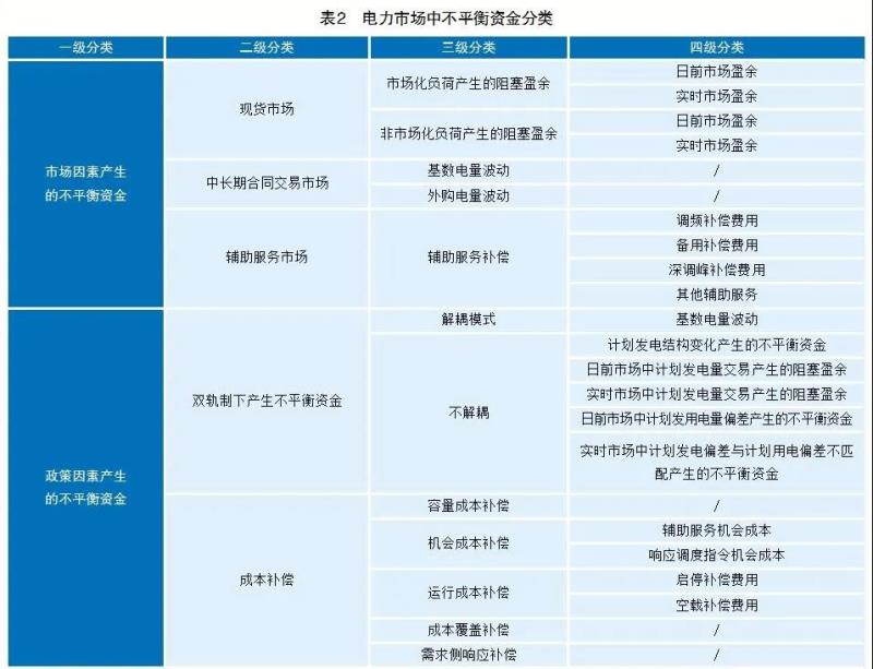 電力市場(chǎng)下不平衡資金的分類(lèi)及其形成機(jī)理