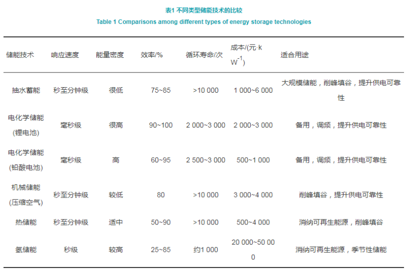 不同類型的儲(chǔ)能在響應(yīng)速度、能量密度、效率、壽命、經(jīng)濟(jì)成本、潛在應(yīng)用上有所差異,歸納如表1。儲(chǔ)能依靠其物理特性,在電力系統(tǒng)中具備諸多潛在價(jià)值,可在市場(chǎng)上提供相應(yīng)的標(biāo)的。