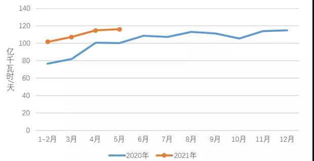 分產(chǎn)業(yè)看①,1-5月,第一產(chǎn)業(yè)用電量362億千瓦時(shí),同比增長(zhǎng)21.6%;第二產(chǎn)業(yè)用電量21779億千瓦時(shí),同比增長(zhǎng)18.6%;第三產(chǎn)業(yè)用電量5483億千瓦時(shí),同比增長(zhǎng)27.8%;城鄉(xiāng)居民生活用電量4681億千瓦時(shí),同比增長(zhǎng)4.1%。