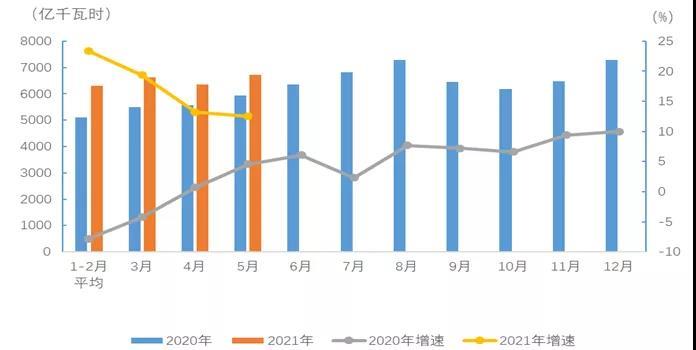 1-5月,全國(guó)全社會(huì)用電量32305億千瓦時(shí),同比增長(zhǎng)17.7%,其中,5月份全國(guó)全社會(huì)用電量6724億千瓦時(shí),同比增長(zhǎng)12.5%。
