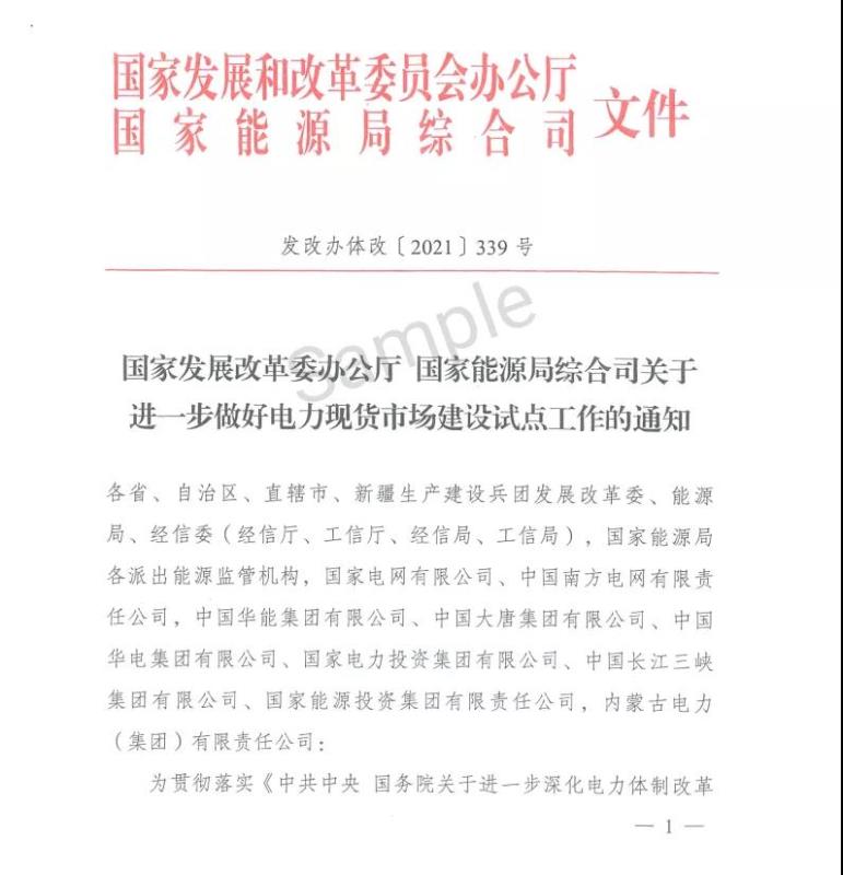 《通知》還明確了電力現(xiàn)貨試點改革探索的主要任務,包括:合理確定市場主體范圍;推動用戶側參與市場結算;統(tǒng)籌開展中長期、現(xiàn)貨、輔助服務;做好本地市場與省間市場銜接;推動新能源參與市場;探索容量成本回收機制;建立合理的費用疏導機制。