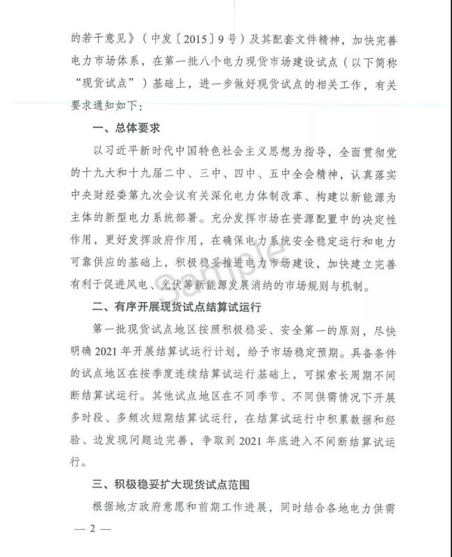 《通知》要求第一批試點區(qū)域按照積極穩(wěn)妥、安全第一的原則,盡快明確2021年試運行計劃,給予市場穩(wěn)定預期。具備條件的地區(qū),在按季度連續(xù)結算試運行基礎上,探索長周期不間斷結算試運行。其他地區(qū)在不同季節(jié)、不同供需條件下開展多時段、多頻次短期結算試運行,在結算試運行中積累經(jīng)驗,發(fā)現(xiàn)問題并完善,爭取2021年底進入不間斷結算試運行。
