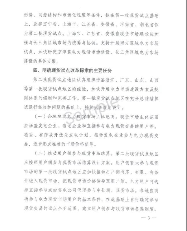 4月28日,國家發(fā)改委和國家能源局聯(lián)合印發(fā)《關于進一步做好電力現(xiàn)貨市場試點工作的通知》(以下簡稱《通知》)?!锻ㄖ访鞔_了電力現(xiàn)貨試點范圍擴大,擬選擇上海、江蘇、安徽、遼寧、河南、湖北等6省市為第二批電力現(xiàn)貨試點。