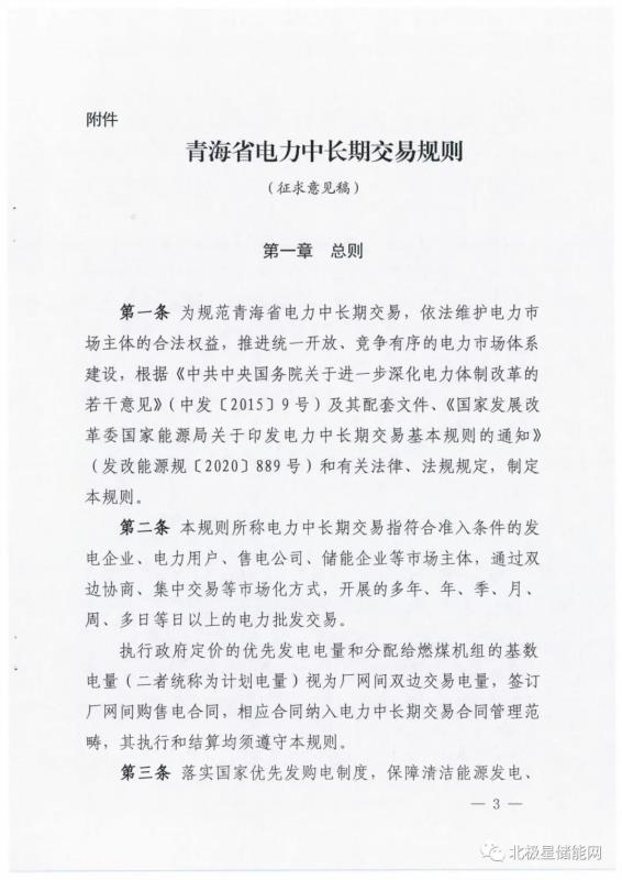 中國儲能網訊:近日,國家能源局西北能監(jiān)局印發(fā)《關于征求<青海省電力中長期交易規(guī)則(征求意見稿)>意見建議的通知》。意見稿中,明確儲能企業(yè)可以作為市場主體參與。根據文件定義,儲能企業(yè)的權利和義務與發(fā)電企業(yè)相同,獲得公平的輸電服務和電網接入服務。