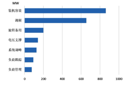 圖1 美國(guó)電池儲(chǔ)能參與不同服務(wù)場(chǎng)景的容量