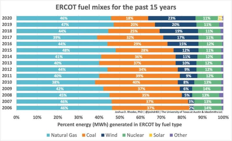 - 因為寒潮來襲,德州一半左右的風力發(fā)電機組被凍結(jié)無法工作,華爾街日報昨天的評論“A Deep Green Freeze“指出德州電荒“彰顯了減少天然氣和煤炭的愚蠢行為”。可再生能源比例提高,對德州的這次電荒到底有何影響?